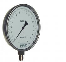 PMK04 series capsule-element pressure gauges are intended to measure small negative and positive pressures of gases and fluids. The measuring element in this type of device consists of two welded diaphragm halves which, when pressurized from the inside, operate a pointer mechanism that indicates the pressure on an aluminum scale. These gauges are also available in brass and stainless steel versions.