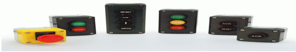 The PDA2360 series of plastic control stations provide a convenient way to remotely control devices such as Precision Digital’s digital meters and controllers. For instance, there is a four-position control station that mimics the ProVu and Helios’s four buttons: Menu, Right Arrow, Up Arrow, and Enter. There are other control stations that can be used to reset the total, acknowledge relays, set a tare, and run a batch process. There are even control stations with no text on the buttons that can be used for any purpose the user requires. An emergency stop control station is also available.