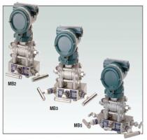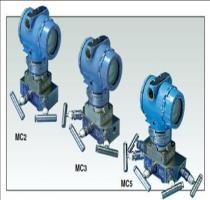 The MB integral manifold is uniquely connected to a low-profile transmitter with a flanged bottom inlet 21⁄8-inches [54 mm] center-to-center connection. The manifold/transmitter assembly has the advantage of small size, light weight and may be either 2-inch pipe stand or wall mounted. Plugged or valved vent/test ports are standard for field calibration checks.