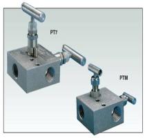 The PT Two-Valve Calibration Manifolds are used on static pressure transmitters, switches or gauges. The shutoff valve, tee, calibration valve, and all immediate tubing/fittings are available in one simple manifold. The PT manifolds are available with either metal seats or replaceable soft seat inserts. The PTM manifold features a unique valve seat that can be converted from soft to hard by simply removing two insert washers. No other parts are required. The PT7 manifold is available for elevated temperatures and features an integral metal seat inserts.