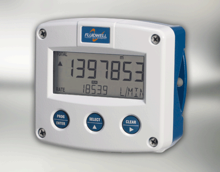 - Fluidwell F012 Flow rate indicator / totalizer displays flow rate and total simultaneously