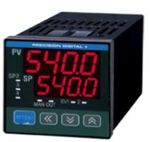The Nova PD540 is a digital temperature controller with auto-tuning PID capabilities that is available in 1/16, 3/16, 1/8, and 1/4 DIN sizes. Models include standard one-directional control (i.e. heating or cooling) or bi-directional heating and cooling control. One of four user programmable set points may be selected for PID control in the form of time proportional relay on/off output, time proportional voltage pulse output, or 4-20 mA signal control. Its universal input accepts 23 input varieties, including thermocouple, RTD, and voltage inputs, and it can be easily configured for a 4-20 mA input. It is available with up to three (3) relays, two (2) 4-20 mA analog outputs, two (2) digital inputs, and an RS485 serial communication option which includes protocols for master/slave set point control, Modbus® ASCII and RTU, as well as PC software.
