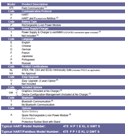 Typical HART/Fieldbus Model Number:475FP1EKLUGMTS
